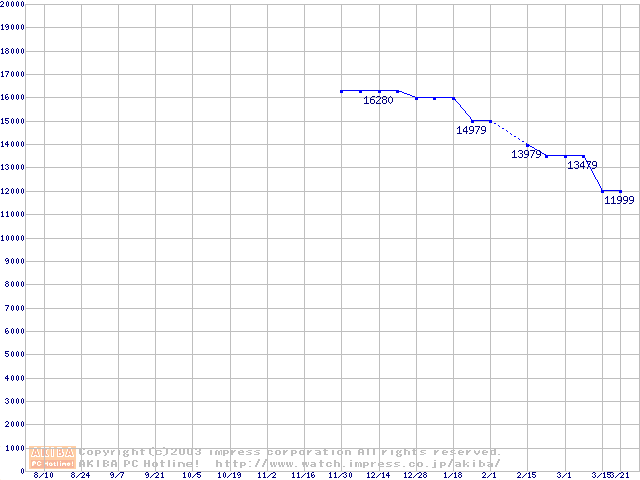 | [↓次グラフ]: | Fireball 3 (5400rpm,UltraATA/133,2MB,FDB)の最安値推移 |