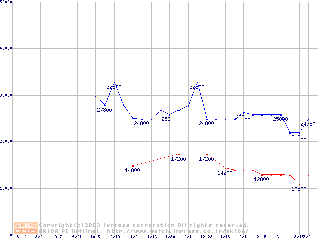 | [↓次グラフ]: | PC133 SDRAM DIMM CasLatency=3の最安値推移 |