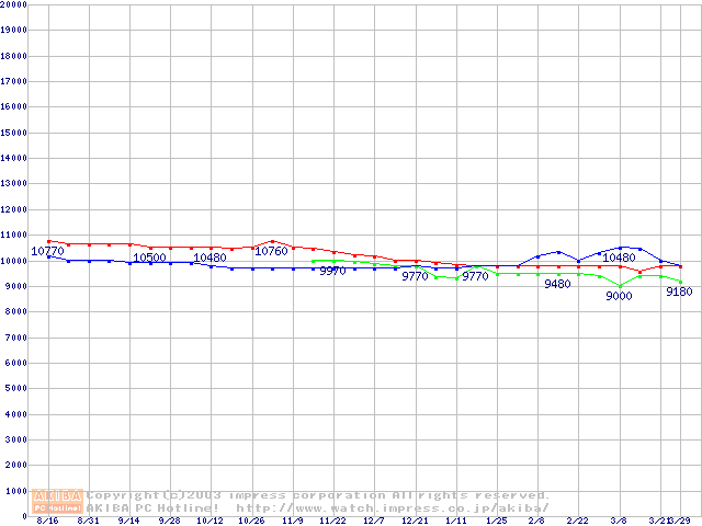 | [↓次グラフ]: | 2.5インチHDD 30GB~40GB未満(9.5mm厚)の最安値推移 |