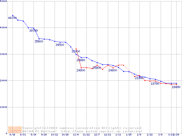 | [↓次グラフ]: | 2.5インチHDD主要製品の最安値推移 |