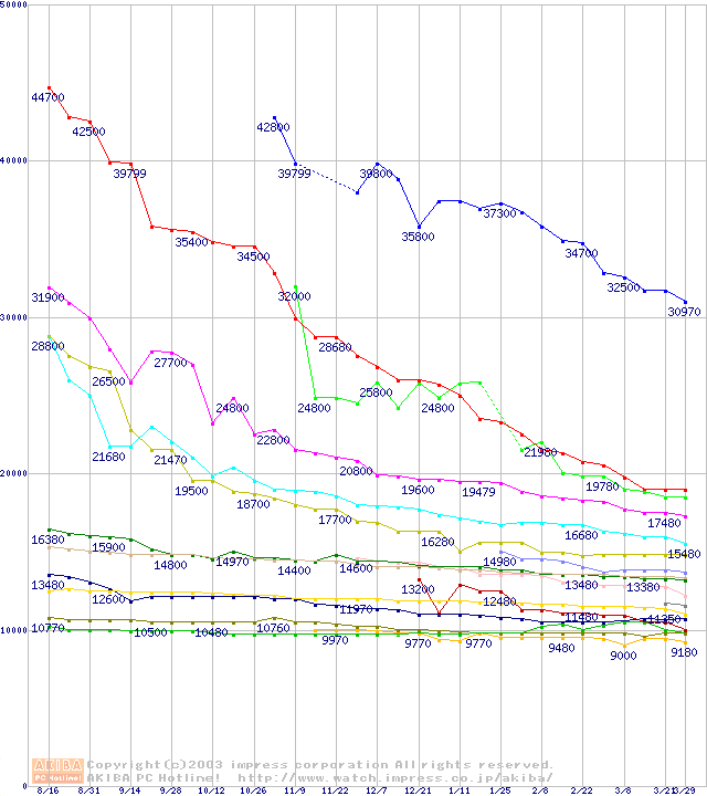 CPU主要製品の最安値推移