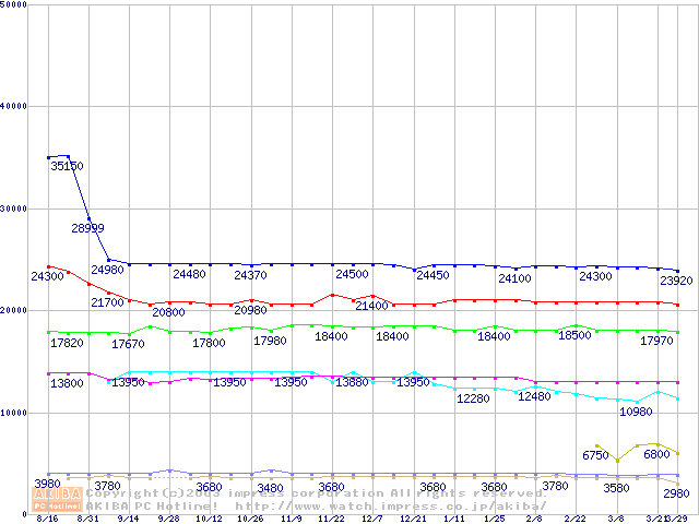 | [↓次グラフ]: | Socket 370・FSB 100MHzの最安値推移 |