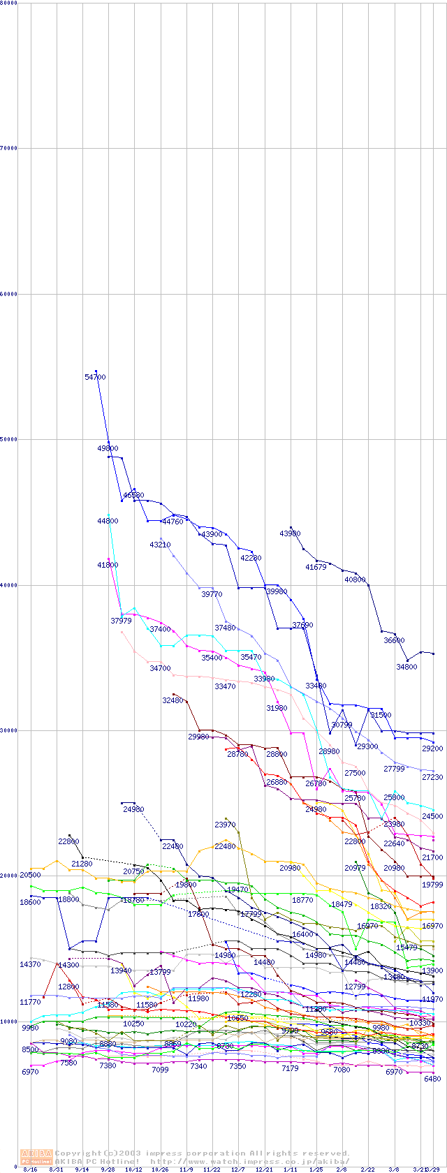 HDD主要製品の最安値推移