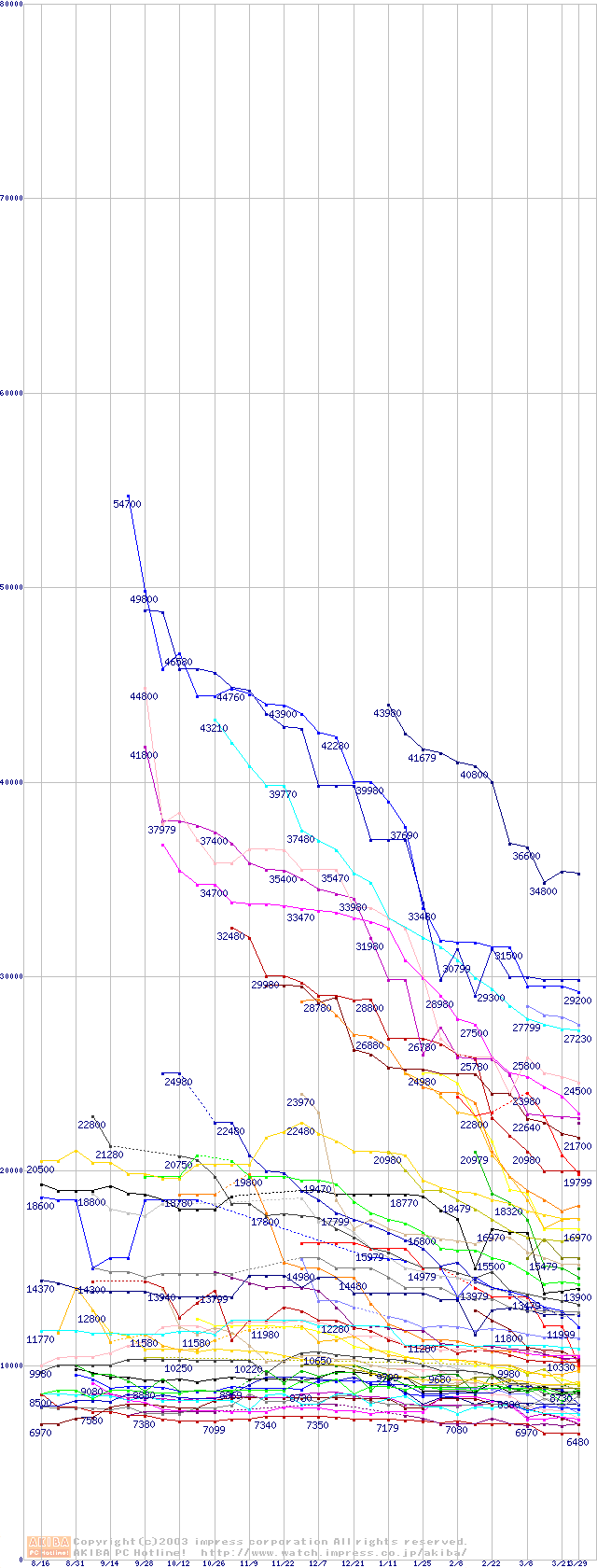 HDD主要製品の最安値推移