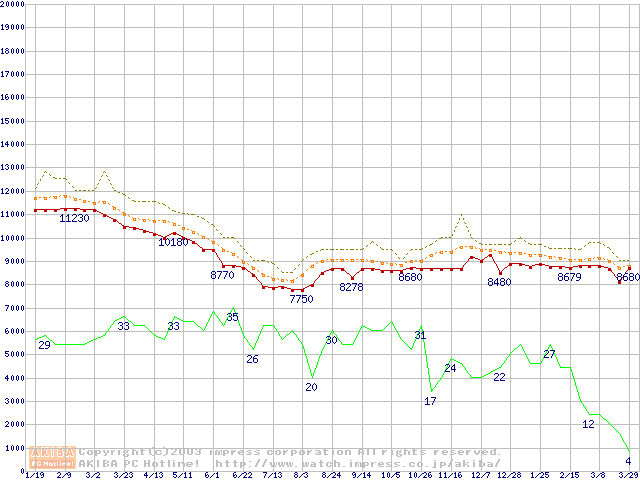 HDD主要製品の最安値推移