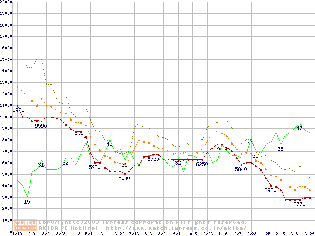 メモリ主要製品の最安値推移