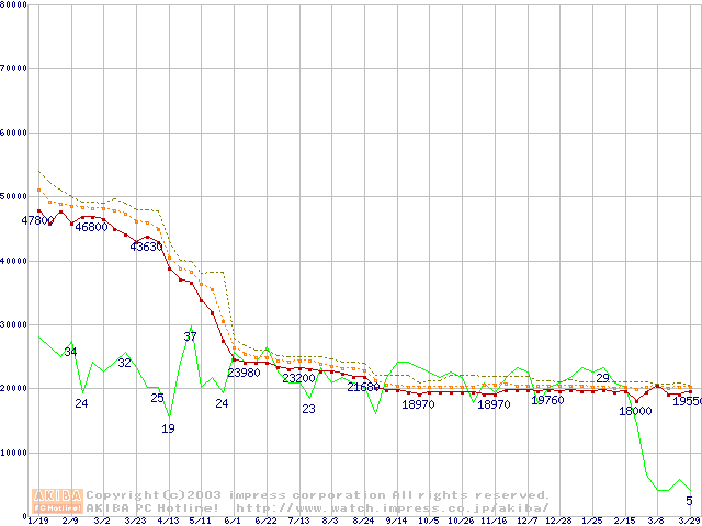 Pentium 4 2A GHz リテールパッケージの価格推移