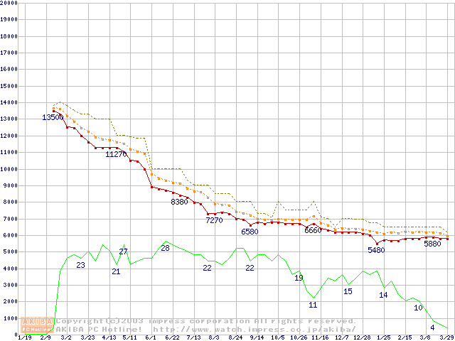 Socket A (PGA,FSB 200MHz,L2 64KB,Morgan)の最安値推移
