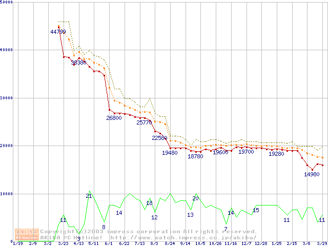 Athlon MP 2000+ (1.67GHz) リテールパッケージの価格推移