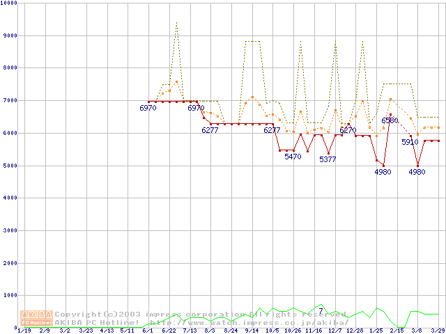 PC800-40 DRDRAM RIMM ECC対応の最安値推移