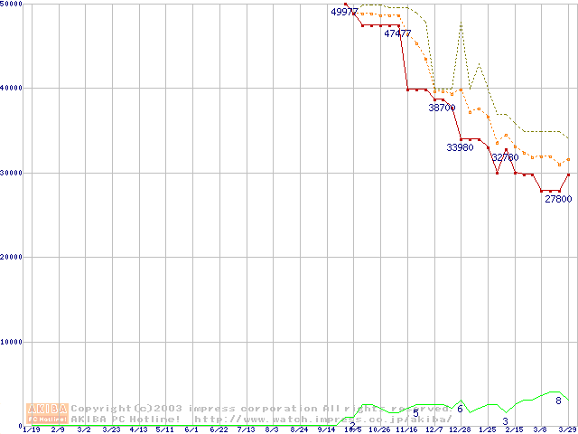 PC1066 DRDRAM RIMM4200(32bit)の最安値推移