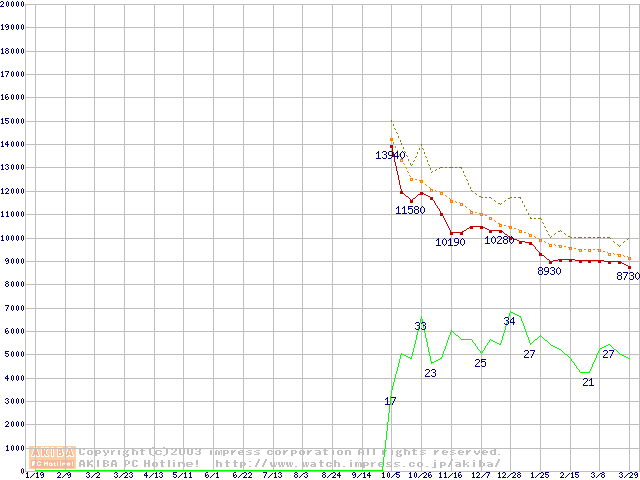 Deskstar 180GXP (7200rpm,2MB,UltraATA/100,FDB)の最安値推移