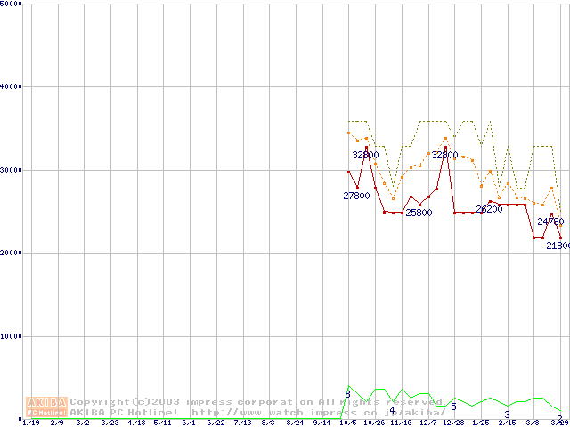 PC3500(DDR433) DDR SDRAM DIMMの最安値推移