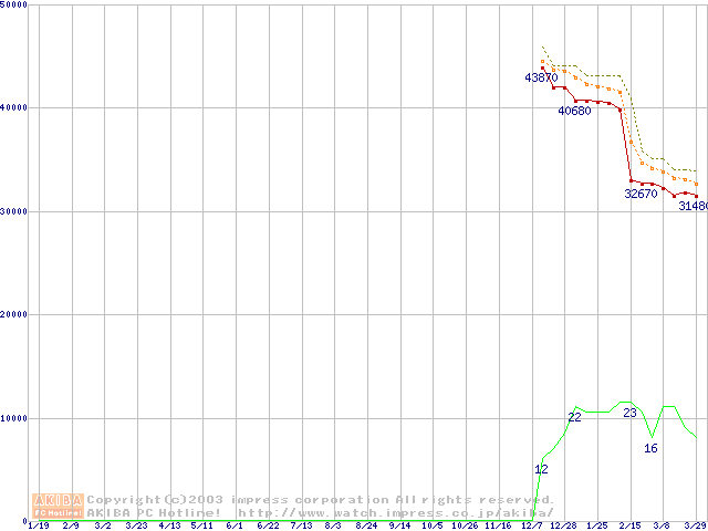 Athlon XP 2700+ (2.17GHz) リテールパッケージの価格推移