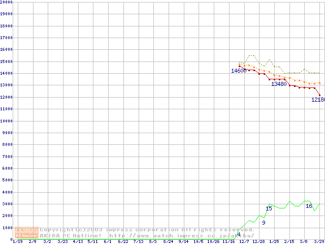 MHSシリーズ (9.5mm,4200rpm,UltraATA/100,2MB,FDB,30GB/Platter,FDB)の最安値推移