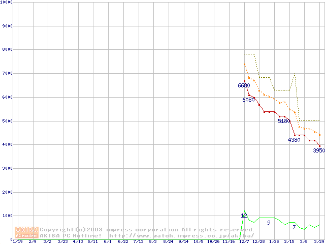 Socket 370 (PGA,FSB 100MHz,L2 64KB,Ezra)の最安値推移