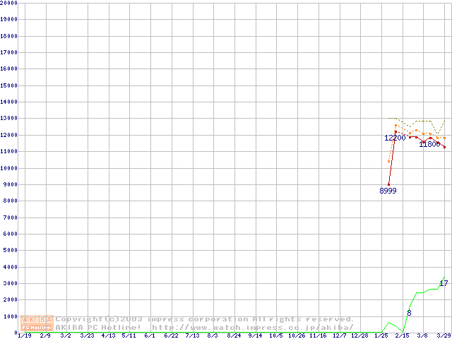 Socket A (OPGA,FSB 266MHz,L2 256KB,Thoroughbred)の最安値推移