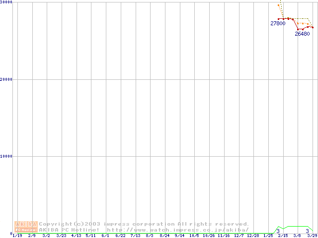 Socket 604 (micro-PGA,FSB 533MHz,L2 512KB,Prestonia)の最安値推移