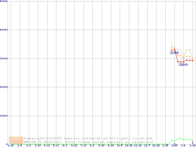 Socket 604 (micro-PGA,FSB 533MHz,L2 512KB,Prestonia)の最安値推移
