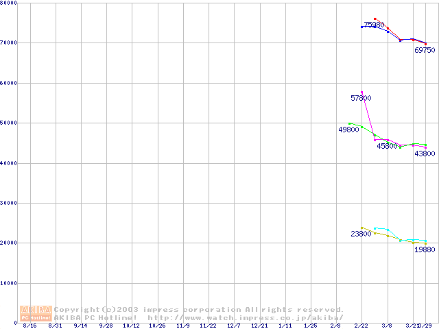 | [↓次グラフ]: | Socket A (OPGA,FSB 333MHz,L2 256KB,Thoroughbred)の最安値推移 |