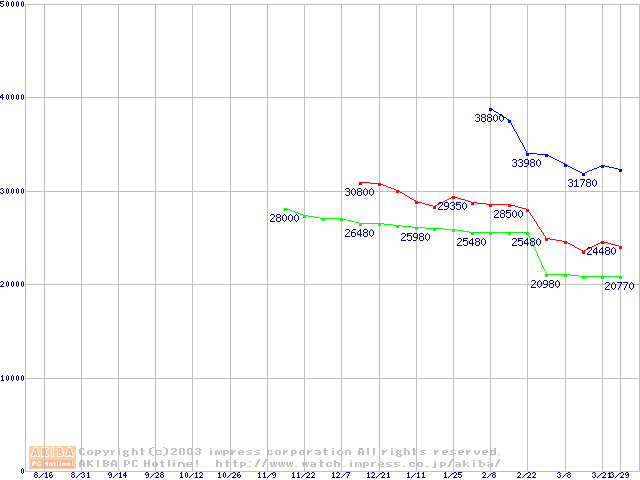 | [↓次グラフ]: | Socket A (OPGA,FSB 266MHz,L2 256KB,Palomino)の最安値推移 |
