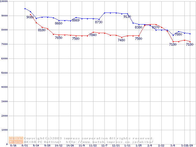 | DiamondMax Plus 8 (7200rpm,2MB,UltraATA/133,FDB)の最安値推移 |