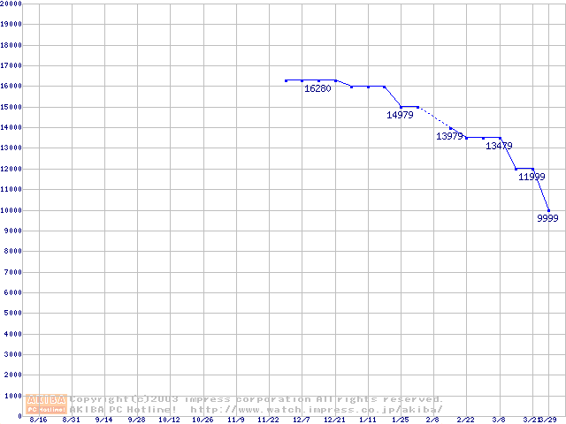 | [↓次グラフ]: | Fireball 3 (5400rpm,UltraATA/133,2MB,FDB)の最安値推移 |