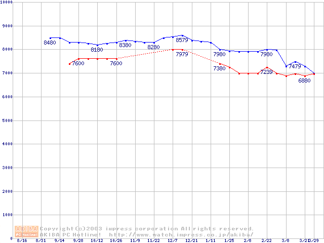 | Fireball 3 (5400rpm,UltraATA/133,2MB,FDB)の最安値推移 |