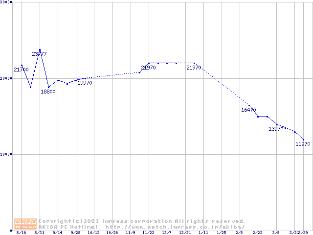 | [↓次グラフ]: | PC3200(DDR400) DDR SDRAM DIMMの最安値推移 |