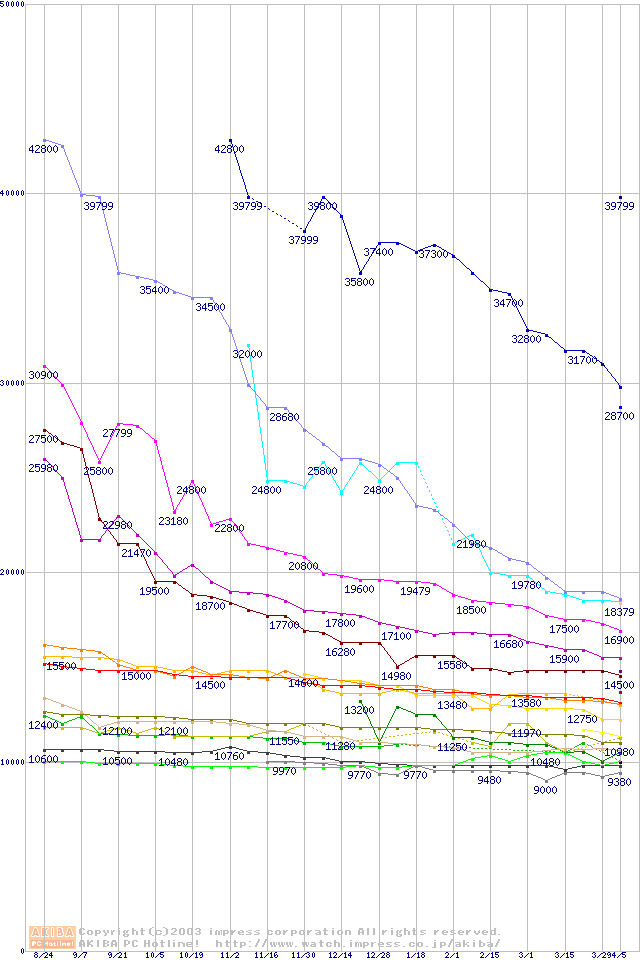 2.5インチHDD主要製品の最安値推移