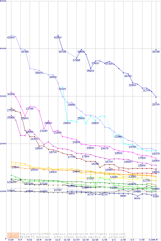 2.5インチHDD 60GB~80GB未満(9.5mm厚)の最安値推移