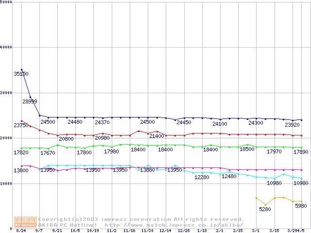 Socket 478・FSB 400MHzの最安値推移