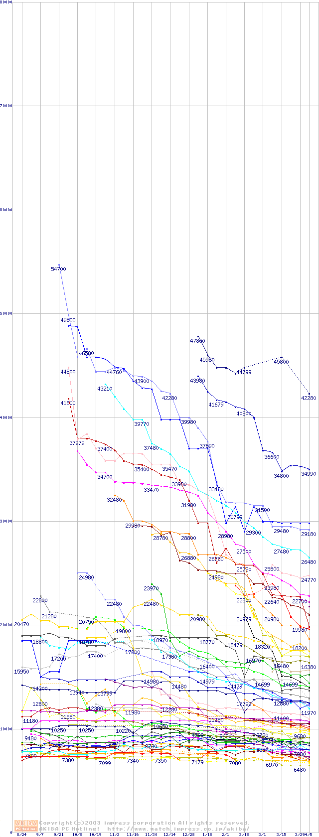HDD 20GB~30GB未満(5400rpmクラス)の最安値推移