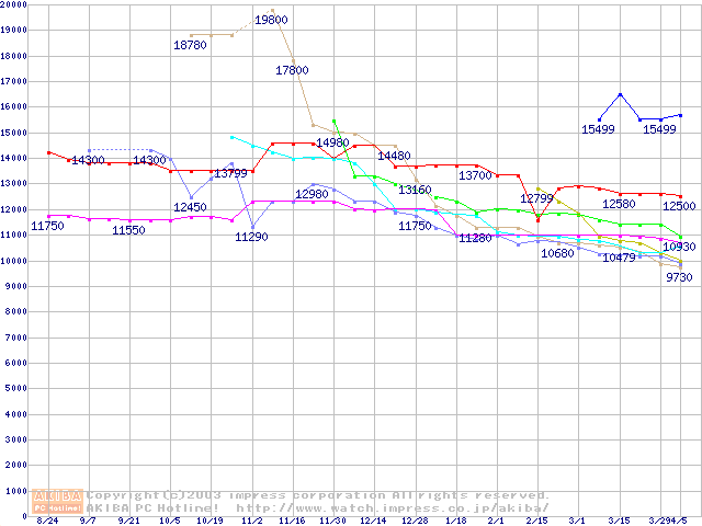 | [↓次グラフ]: | HDD 100~160GB未満(7200rpmクラス)の最安値推移 |