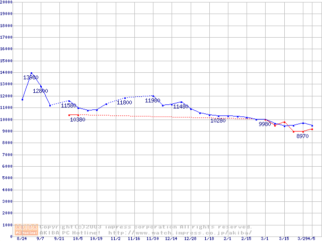 | [↓次グラフ]: | HDD 100GB以上(5400rpmクラス)の最安値推移 |