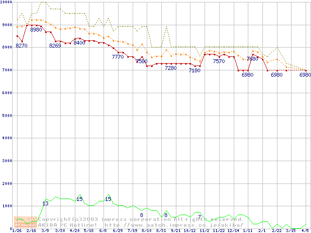 WD Protege (5400rpm,UltraATA/100)の最安値推移