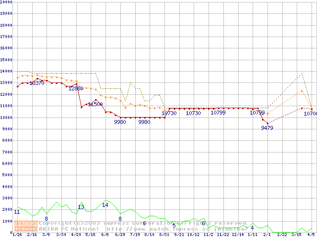 WD Caviar (5400rpm,UltraATA/100,2MB)の最安値推移