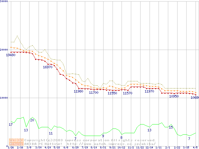 WD Caviar (7200rpm,UltraATA/100,2MB)の最安値推移