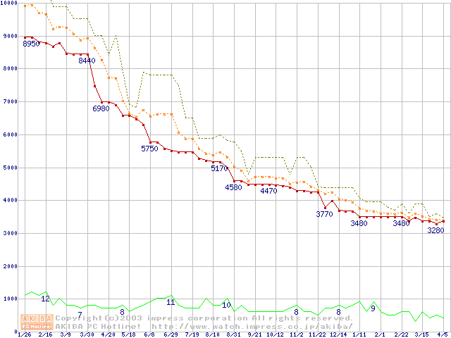 Socket A (PGA,FSB 200MHz,L2 64KB,Morgan)の最安値推移