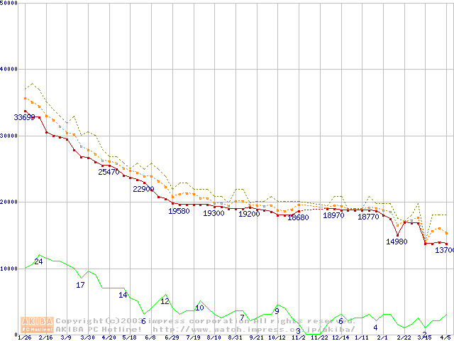 WD Caviar (7200rpm,UltraATA/100,2MB)の最安値推移