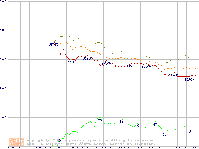 PC800-40 RIMM 512MBの価格推移