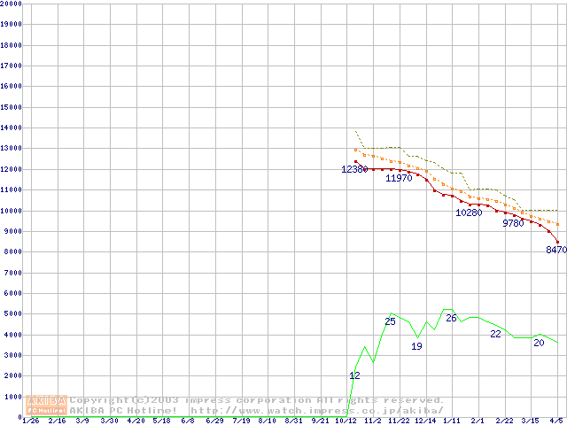 HDD 60GB~80GB未満(7200rpmクラス)の最安値推移