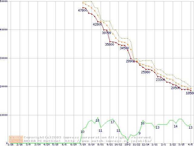 MKシリーズ (9.5mm,4200rpm,2MB,FDB,30GB/Platter)の最安値推移