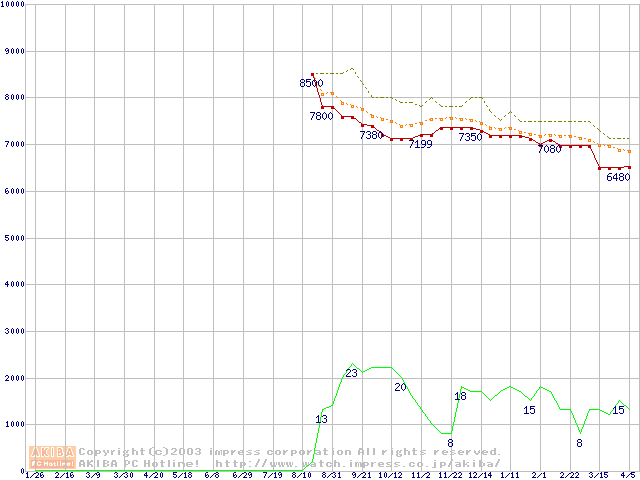 HDD主要製品の最安値推移
