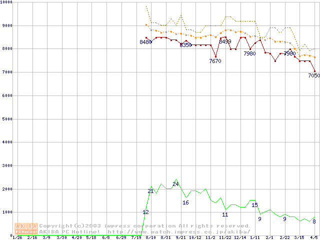 Fireball 3 (5400rpm,UltraATA/133,2MB,BB)の最安値推移