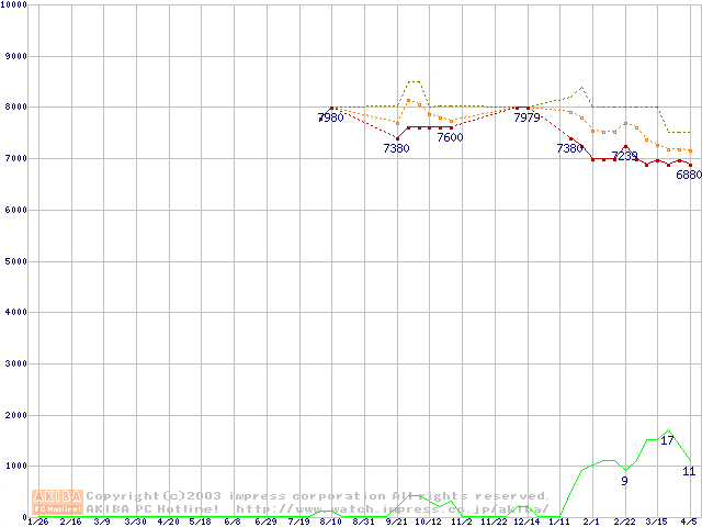 Fireball 3 (5400rpm,UltraATA/133,2MB,FDB)の最安値推移