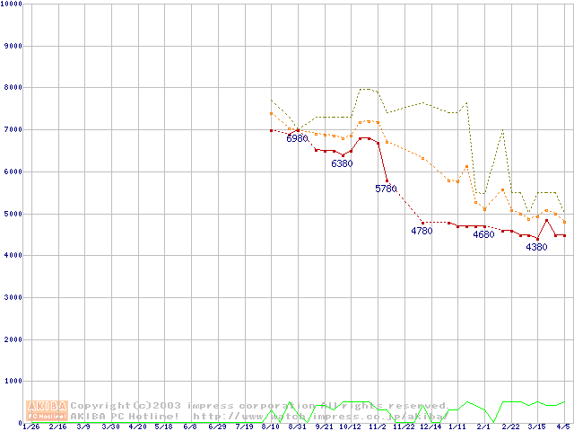 Socket 370・FSB 100MHzの最安値推移