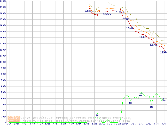 DiamondMax 16 (5400rpm,UltraATA/133,2MB,80GB/Platter,FDB)の最安値推移