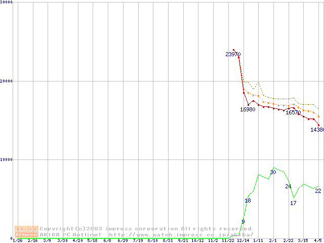 DiamondMax Plus 9 (7200rpm,8MB,UltraATA/133,FDB)の最安値推移