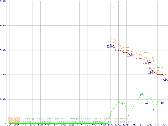 DiamondMax Plus 9 (7200rpm,8MB,UltraATA/133,FDB)の最安値推移